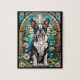 quebra-cabeça de excelente com um cão de Boston Terrier preto-e-branco, artisticamente feito em um modo de janela de vidro tingido. Perfeito para amantes de cães, donos de animais de estimação. práticas de veto.