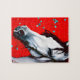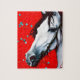 Cavalo gerado pela IA sobre fundo vermelho com flores azuis