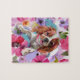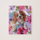Construa sua própria peça de arte com este quebra-cabeça de Blenheim Cavalier Charles Spaniel. Fundo floral, cor rosa e roxa. presente de Excelente para amantes de estimação. Disponível em tamanhos pequenos e grandes.