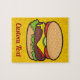 Ícone Cheeseburger. Imagem do contorno da comida de lixo ícones de fundo amarelo. Custom Text.