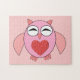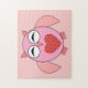 Esta quebra-cabeça espetacular mostra um desenho fofo de uma coruja rosa com olhos sonolentos, um pequeno bico e pequenos pés fofos. A coruja tem um grande coração de amor vermelho no meio da barriga e asas bem abertas prontas para dar um grande abraço a alguém.