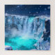 Lindo quebra-cabeça com uma sonhadora queda d'água congelada com água gelada brilhante, detalhes de cristal cintilante, neve suave caindo e uma atmosfera mágica de noite de inverno. Perfeito para relaxar, presentear, momentos aconchegantes com quebra-cabeças e para quem ama paisagens de inverno fantásticas e papelaria elegante. Um design de quebra-cabeça ousado e encantador cheio de gelo, luz e beleza congelada.
