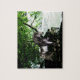 Uma pintura de um unicórnio negro em um rio a partir de sua borda de floresta.