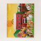 Um quebra-cabeça brilhante e divertido para toda a família. Fazendeiro, animais de celeiro e um grande celeiro vermelho.