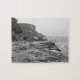 Foto de arte da costa rochosa em preto e branco.