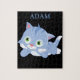 Gatinho azul e branco com o nome da criança quebra-cabeça.