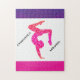 Quebra-cabeça de ginástica com ginasta passando por um suporte de mão e nome personalizado.