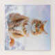 Quebra-cabeça com uma pintura de um gatinho gengibre numa cena sonhosa de terra maravilhosa do inverno. Bom para adultos e crianças.