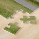 Quebra-cabeça de golfe com a imagem de um campo de golfe, carrinho e pessoa jogando golfe. quebra-cabeça excelente para o pai de golfe.