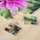 Quebra-cabeça perfeito para amantes da natureza. Esta foto de MiaMoon Photoographic foi transformada em um quebra-cabeça. É de uma bota metálica de vaqueiro e uma flor rosa em uma cama de rochas com verde.