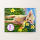 O pequeno Lamb elogia o seu filho por terminar o quebra-cabeça. O quebra-cabeça pode ser personalizado com o nome da criança. Neste momento, o exemplo diz "Vivi", mas certamente Kylar, Kiera ou Matthew (ou qualquer pessoa) podem ser substituídos. Bonito cores pastel de Primavera na imagem são perfeitas para crianças.