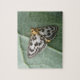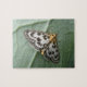 Esta quebra-cabeça espetacular mostra uma macro fotografia detalhada de uma espécie britânica de mariposa chamada "Pequena Magpie Moth". A mariposa está sentada em uma folha de brócolis. A fotografia foi tirada usando a macro fotografia para revelar as marcas vistas detalhadas desta bela mariposa britânica.