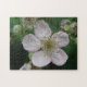 Esta quebra-cabeça espetacular mostra uma fotografia de uma flor branca de amora. A foto foi tirada usando macro fotografia para um resultado detalhado. Vocês podem ver o detalhe fino como a dobradiça rosa nas pétalas brancas.