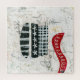 Colagem divertida, mídia mista em acrílico, lápis e lápis e lápis. Ele apresenta um fundo branco rabiscado por um lápis com pop de cor das camadas abaixo, depois elementos pretos e brancos no prato de xadrez, flores e listras. Ele termina com um sotaque vermelho brilhante e loopy perto do topo.