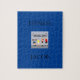 Nome personalizado em um malhação de quebra-cabeça em azul.