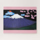 quebra-cabeça de 520 partes da pintura bonita de Monte Fuji em um fundo cor-de-rosa para acentuar as flores de cerejeira.