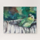 Papagaio verde saindo do seu buraco, pintura aquosa, quebra-cabeça