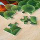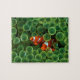 Quebra-cabeça de jogo mostrado com um impressão de foto de peixe colorido escondido na marinha verde. Personalize este item ou comprar como está. Imagem do stock