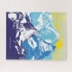 Picos alpinos famosos em tons de azul e amarelo. Quebra-cabeça ideal para alguém que vive com a forma mais comum de cegueira a cores.