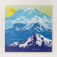 Monte Rainier, Ruas Monte Helens e Monte Hood são apresentados em tons de azul em um céu amarelo e azul. Um quebra-cabeça excelente para o entusiasta da montanha e também para quem vive com a forma mais comum de cegueira a cores.