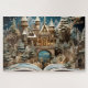 Aproveite a maravilha da temporada com este quebra-cabeça do castelo do livro de Natal. Um castelo de férias brilhando sai de um livro aberto cercado por árvores nevadas e céus estrelados. Uma atividade de inverno mágica e um presente de Natal perfeito para fãs de quebra-cabeça, famílias e amantes de arte de fantasia.