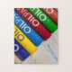 Quebra-cabeça personalizável de serra-gigante de diferentes cores de creões pastel alinhados diagonalmente em uma canvas branca à medida que são vistos de perto.