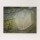Uma fotografia de uma teia de aranha escutando no orvalho matinal adorna este quebra-cabeça.