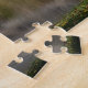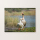 Quebra-cabeça personalizável de dois gansos andando pela grama perto do rio no início da manhã.