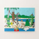 Uma quebra-cabeça de época de Natal surpreendentemente diferente. A praia e os animais divertidos! O quebra-cabeça é melhor no tamanho de 11x14. Você pode comprá-la como uma versão fácil para crianças - 30 peças de tamanho excessivo OU a 252 peça desafiadora para crianças e adultos mais velhos. Uma árvore de Natal decorada por um grupo deliciosamente colorido de animais loucos sob uma palmeira na praia é a criação do artista/ilustrador d.a.gordon dart.