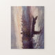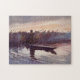 Este quebra-cabeça de serra de vaivém caracteriza um gráfico do vintage de um caçador do pato entre os juncos durante um por do sol pitoresco. Um grande presente!
