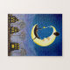 Quebra-cabeça doce do Dia das Bruxas que mostra uma lua crescente bonito que joga com gatos pretos. A arte intitulou de "a estrela Salem" por Christine Altmann