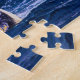 Um quebra-cabeça de serra de vaivém que caracterize uma baleia de humpback que indica seu solha enorme da cauda fora das águas dos surfistas paraíso, Austrália durante sua migração anual.