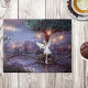 Quebra-cabeça com uma pintura de uma cena noturna de conto de fadas com luzes românticas.