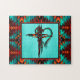 Aproveite este único "Um dos tipos" da Cruz Sudoeste e Quebra-cabeça do Coração! Ele apresenta uma grande cruz sudoeste e coração em turquesa, laranja e preto no fundo de uma pedra de bronze... cercado por uma borda sudoeste! Design De Arte Original Pelo Artista Kerry Miller.