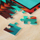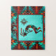 Personalize este único "Um dos tipos" Quebra-cabeça do sudoeste de Kokopelli! Ele apresenta um Kokopelli sudoeste tocando flauta e dançando sob o sol em um fundo turquesa... cercado por uma borda sudoeste em Turquesa, Laranja e Preto! Este é um Design de Arte Original "Um dos Tipos" do Artista Kerry Miller.