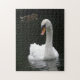 Esta quebra-cabeça espetacular mostra uma fotografia de um lindo cisne branco com um bico laranja brilhante. O cisne é um cisne mudo (Cygnus olor) e foi fotografado no Reino Unido. Está suavemente a atravessar a água e parece muito sereno.