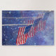 Três Bandeiras quebra-cabeça. Um design com um céu azul escuro, estrelas e três bandeiras. Duas das bandeiras são um pouco mais transparentes do que a bandeira frontal para efeitos.