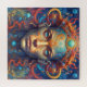 Quebra-cabeça de um retrato alienígena de uma arte de fantasia de menina. Retrato colorido de uma garota olhando para você com olhos verdes azuis. O quebra-cabeça de serra foi feito com cores muito vibrantes.