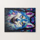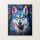Este é um quebra-cabeça de lobo. Sua imagem retrata um lobo colorido imaginado em um estilo de vidro colorido, com o foco de cor em branco, azul e roxo. Este quebra-cabeça faz um presente excelente para indivíduos que amam animais, lobos ou o estilo de vidro manchado. Este conteúdo quebra-cabeça é adequado para indivíduos com idade superior a 6 anos. Ele está disponível em todos os tamanhos e pode ser ajustado pelo cliente.