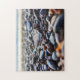Uma parte de vidro da praia senta-se nas rochas perto das proximidades do lago.