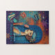 Esta Design foi inspirada pelo estilo Art Deco. Ele apresenta uma Senhora da Deco de Arte dos anos 20 em um fundo bonito e colorido com tons laranja, azul e roxo. Divirta-se construindo esta bela quebra-cabeça.