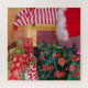 Esta design apresenta uma fotografia divertida e peculiar das pernas de uma jovem em estacas vermelhas e brancas enquanto ela empolgada decora sua árvore de Natal a tempo das comemorações.