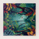 The scene is composed of layers of lush, varied foliage with a highly dramatic and unnatural color palette, featuring: