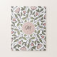 This pretty jigsaw puzzle features a retro-inspired floral design that's pure cottagecore bliss. Hand-drawn soft pink flowers and delicate green leaves dance across a clean white background, creating a charming and romantic feel. Whether you're taking a well-deserved break from a busy day or sinking into some relaxing me-time, this lovely puzzle makes the moment even lovelier. To make it truly yours, just click "Personalize this design" to customize the monogram.