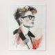 Uma ilustração digital de um jovem Hipster com um desenho de linha multicolor.