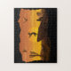 Desert Sunset Nature Kokopelli Jigsen Quebra-cabeça. Cavalos, corvos e lobos soltaram-se na quebra-cabeça da paisagem do deserto. Design com silhuetas de animais e cores vibrantes do pôr do sol. Você pode brincar com a cor de fundo para se adequar ao seu gosto.