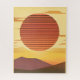 Quebra-cabeça num pôr do sol retrô, minimalista do deserto sobre colinas, em tons de laranja de ferrugem profunda, amarelo ouro e castanho