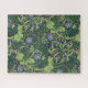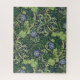 Algas marinhas; um padrão floral elegante art nouveau com folhas verdes-timas encaracoladas e flores azuis cobaltas do famoso designer de artes e artesanatos inglês William Morris.
