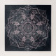 rosa de ouro branco, cinzento-branco, mandala mehndi flor, cor-de-rosa-rosa, manchas brancas de henna floral, design de tendências boêmicas, apresentando um círculo geométrico de flores e formas de penas, linhas, listras, triângulos e pontos, sobre uma cinza de cor azul, manchas aquosas e placas de cor e nebulosa de galáxias, universo, constelação, espaço, astronomia, imagem da natureza. Este rosa de efeito de textura metálica falsa, design, asteca, tradicional com uma reviravolta moderna, mística, decorativa, desenhada à mão, ilustração nativa, étnica, bô-chic, sonhar-se-á trabalho de arte, é perfeito para o veste cotidiano, decoração caseira, celebrações e decorações de temas de dias especiais.