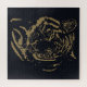 Esta moda de tigre de folha de ouro, de cor azul, desenhada à mão, em na moda, sobre fundo preto é a escolha perfeita para qualquer ocasião, visto diário ou decoração doméstica.